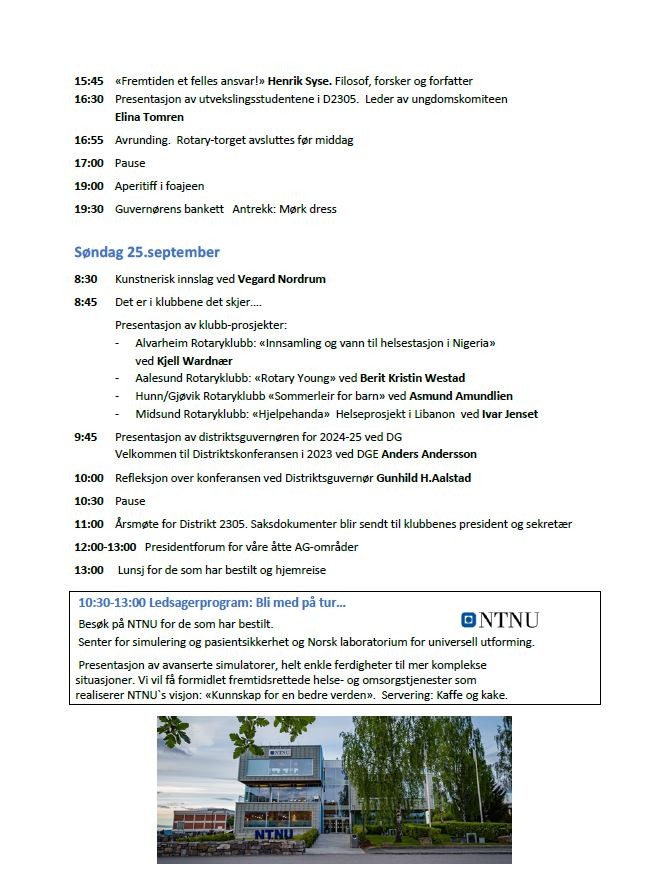 26.- 28. september arrangeres årets fineste Rotary-arrangement med programtittel: GAGNE ANDRE – I BEREDSKAP, I KULTUR OG I KRISE